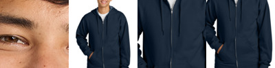 8.4-ounce, 80/20 ring spun cotton/polyester 75/25 ring spun cotton/poly (Ring Spun Sport Grey) Brushed interior and a 100% ring spun cotton face Two-piece dyed-to-match jersey fabric-lined hood Drop shoulder Metal zipper Front pouch pocket 1x1 rib knit with spandex cuffs and bottom band Classic fit, seamless body Recycled, high-performing black tear-away label