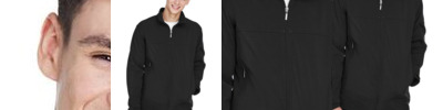 9 oz./yd² (US), 15 oz./L yd (CA), 3-Layer, 96/4 polyester/ spandex Bonded to 100% polyester fleece with inner membrane Poly fill in body: 2.9 oz/yd², polyester taffeta lining Poly fill in hood and sleeves:4 oz/yd², polyester taffeta lining 8,000 mm waterproof rating 800 g breathability rating EZAWAY SYSTEM™ featuring zip-off thermal hood; inside storm placket with fleece chin guard Right-chest zippered pocket Adjustable fleece-lined cuffs Shock-cord at hood and drop back hem EZEM SYSTEM™ embroidery access