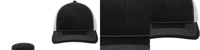 100% cotton 100% polyester mesh back structured, six-panel, pro-round Slight pre-curved visor Cotton twill sweatband Contrast construction stitch Snapback closure Woven loop label