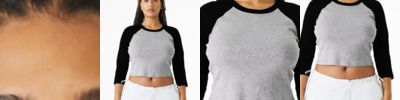 Stretch fit Crewneck binding 3/4-sleeve 1x1 micro rib Side seamed Mid-length Tear-away label 5.4-ounce, 52/48 Airlume combed and ring spun cotton/polyester, 32 singles Athletic Heather/Black: 90/10 Airlume combed and ring spun cotton/polyester
